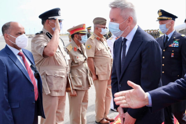 Nel corso della missione in Libia, il responsabile del dicastero ha pure incontrato il personale della Marina militare imbarcato nell’unità di trasporto costiero “Nave Pantelleria” in rada a Tripoli e il Comandante della Missione italiana di Assistenza e Supporto in Libia (MIASIT), Maurizio Fronda. MIASIT ha lo scopo di fornire assistenza e supporto al Governo di Accordo Nazionale, alle forze armate e alla Guardia costiera libica, prioritariamente nel “contrasto al terrorismo e ai flussi migratori illegali”. Attualmente la Missione di Assistenza e Supporto in Libia vede il dispiegamento di 400 militari, 142 mezzi terrestri, 2 aeromobili e le unità navali del dispositivo nazionale Mare Sicuro.