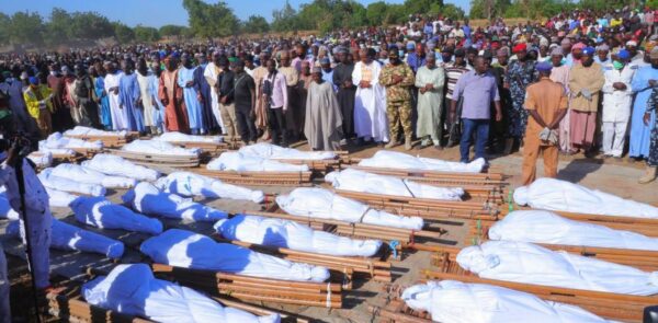 E’ stata una mattanza oltre ogni previsione. L’attacco perpetrato da uomini armati in sella alle loro motociclette ieri non ha lasciato sul terreno non 43 contadini, bensì 110. Altre settanta persone sono state ritrovate qualche ora dopo, ora tutti allineati nelle bare, uno accanto all’altro, per la sepoltura.