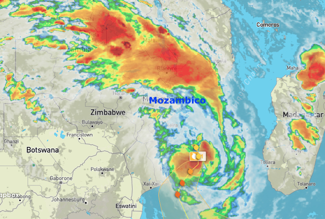 Il ciclone tropicale Guembe visto dai satelliti (Courtesy https://www.wunderground.com/)
