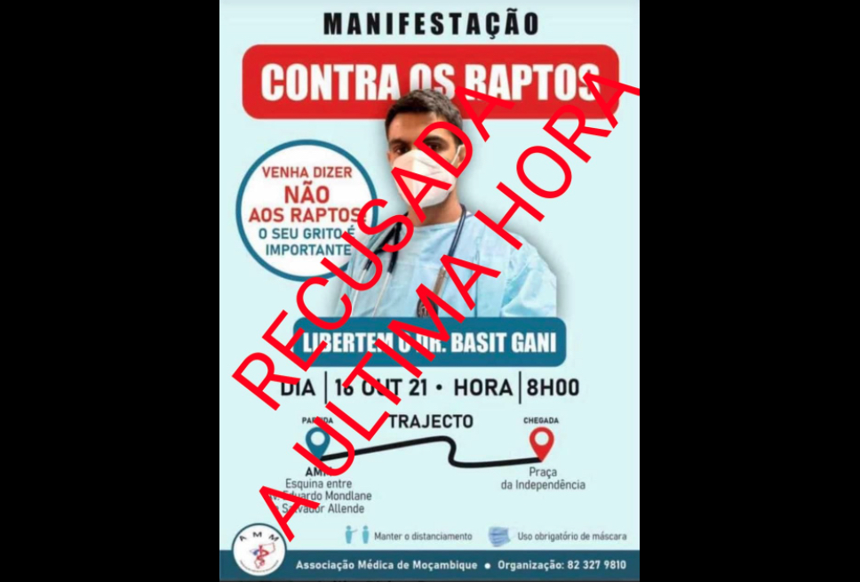 Manifesto del dr. Gani per la manifestazione contro i sequestri, annullata dalle autorità mozambicane