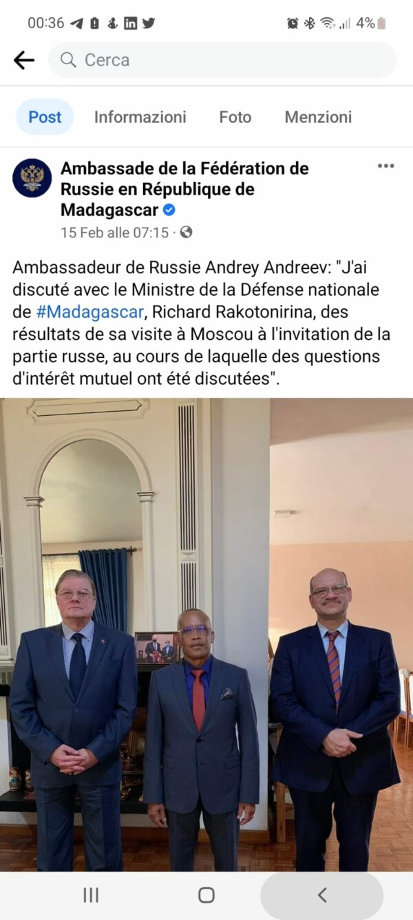 Nel post viene specificato che un membro del governo malgascio è stato invitato dalla controparte moscovita per discutere questioni di comune interesse.