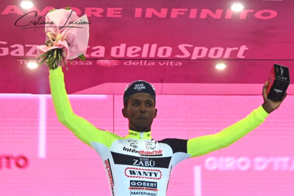 “Non tramonterà mai la fiaba della bicicletta”, aveva scritto Dino Buzzati sul Corriere della Sera il 12 giugno 1949 seguendo il Giro d’Italia di quell’anno. Quella di Bimian è una piccola fiaba. Per ora. La sua carriera è sorprendente. Come abbiamo avuto modo di scrivere anche qui, nel 2021 si era classificato al secondo al Mondiale U23 e la primavera scorsa aveva trionfato nella grande classica belga Gand – Wevelgem, primo successo assoluto per un pedalatore africano. E’ giunto 12esimo alla Milano Sanremo e nella corsa rosa, atteso come protagonista, lo è stato. Sempre combattivo e nelle prime posizioni alla ricerca di una vittoria, che oggi a Jesi è arrivato. E in modo mirabile: ha distrutto uno dei corridori più tosti, l’olandese Mathieu van der Poel, 27 anni.