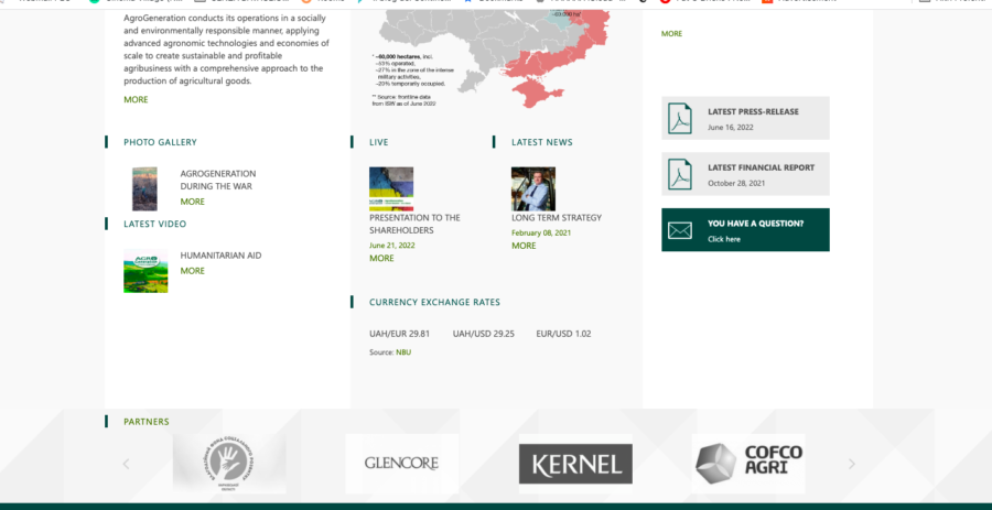 Sul suo sito inoltre c’è scritto: “In un’epoca di opportunità derivanti dalla crisi alimentare globale, Agro Generation opera su alcuni dei migliori terreni del mondo in Ucraina, un Paese che è già uno dei principali esportatori di cereali e che aumenterà la sua produzione di diverse volte”.