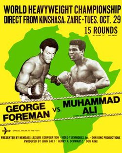 Il poster che pubblicizzava il mach di boxe tra Foreman e Mohammed Ali organizzato a Kinshasa