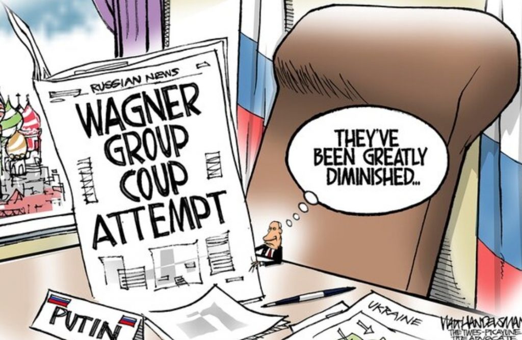 Il terribile Alexander Grigoryvich Lukashenko, figlio di un certo Grigory, sostiene di aver dato rifugio al leader mercenario in Bielorussia per evitare che Putin lo uccidesse. Il capo dei Wagner afferma di non aver mai avuto l’intenzione di rovesciare Putin e ucciderlo. L’alleanza occidentale sostiene che il tentativo di colpo di Stato, l’ammutinamento o qualsiasi altra cosa sia stata, ha reso Putin ancora più pericoloso. O forse no?