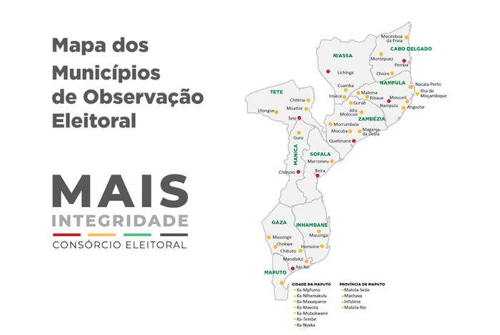 Mappa del Mozambico con i seggi delle elezioni politiche 2023 (Courtesy Consorcio Eleitoral Mais Integridade)