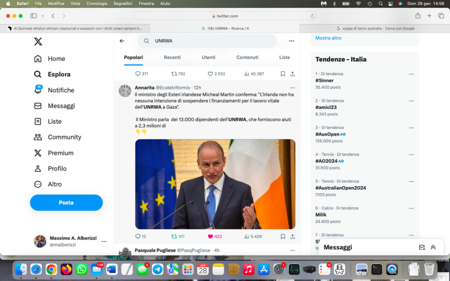 L’altro ieri, appena arrivata la notizia che 12 funzionari dellāagenzia delle Nazioni Unite incaricata di assistere i rifugiati palestinesi (UNRWA, United Nations Relief and Works Agency for Palestine Refugees in the Near East) sono accusati di aver partecipato allāorrendo massacro perpetrato da Hamas il 7 ottobre contro cittadini israeliani (oltre 1200 morti), i governi americano e britannico hanno annunciato il blocco dei finanziamenti allāagenzia. LāItalia, sempre garantista ma solo con gli amici, senza aspettare un’inchiesta seria e indipendente (annunciata dall’ONU, che ha ovviamente giĆ licenziato i 12 del suo staff) si ĆØ subito allineata.