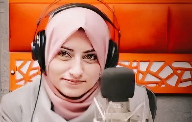 Duaa Sharaf, giornalista palestinese Sharaf, conduttrice di Radio Al-Aqsa, uccisa con il suo bambino in un attacco missilistico nel quartiere di Yarmouk nell’area Al-Zawaida al centro della Striscia.