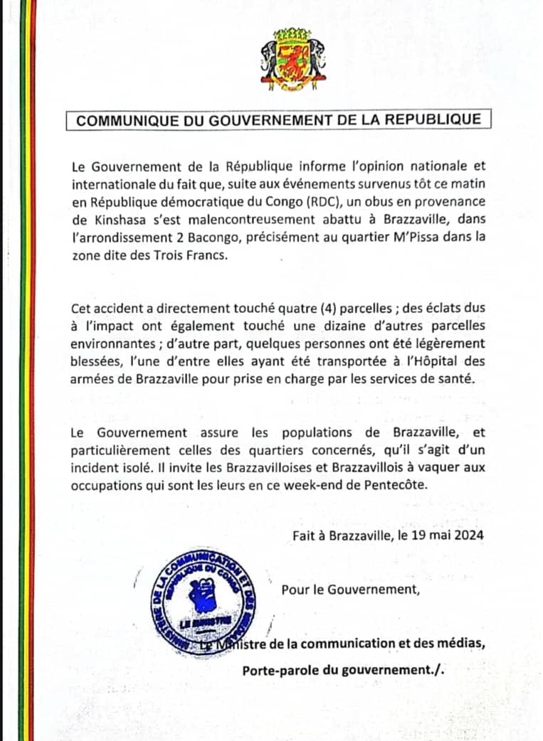 Durante le aggressioni di questa mattina, una granata, proveniente da Kinshasa ha raggiunto accidentalmente Brazzaville, capitale della vicina Repubblica del Congo. Le autorità hanno assicurato che si è trattato di un incidente isolato.