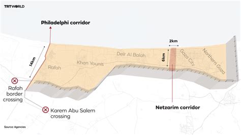 Ma questo non basta. Israele vuole anche dividere la parte a nord e creare un altro corridoio est/ovest, detto Netzarim Corridor. Per altro già in costruzione secondo le immagini satellitari. Insomma l’esercito potrà pattugliare varie zone della Striscia, ma sopratutto sarà impossibile per i normali cittadini palestinesi percorrerla da nord a sud come prima.