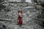 Palestinion children among rubble in Gaza on 3 March 2024-2048585802
