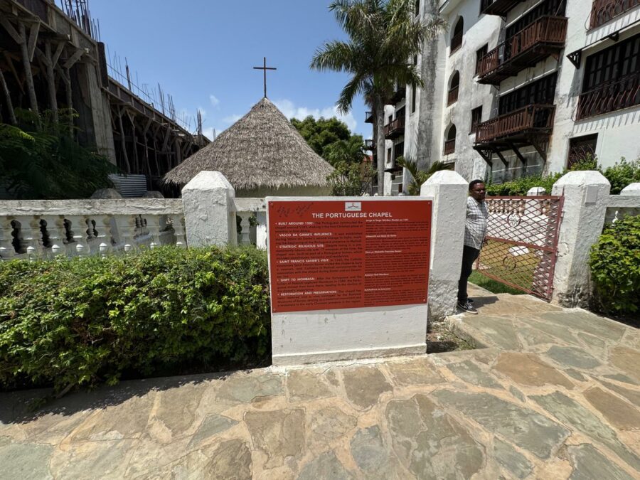 Certo, non crediate di trovare affreschi o immagini come nelle chiese europee o etiopiche. Il valore di quella cappella è prevalentemente storico. E’ il primo edificio cristiano costruito in Africa orientale dove già per altro esistevano moschee, giacché quella costa del continente faceva parte del sultanato di Zanzibar, a sua volta tributario del sultano dell’Oman.