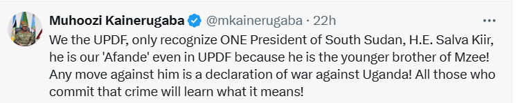 Ora bisogna capire quali sono le reali intenzioni del figlio di Museveni, perchè già ora si parla di interferenze da parte dell’Uganda, criticata anche nel 2013 e nel 2016 per i suoi interventi militari nel Sud Sudan.