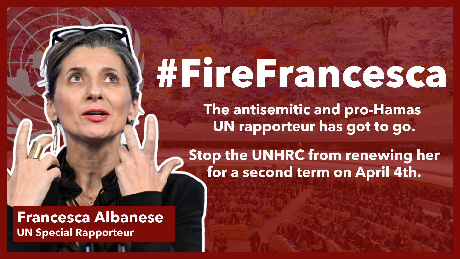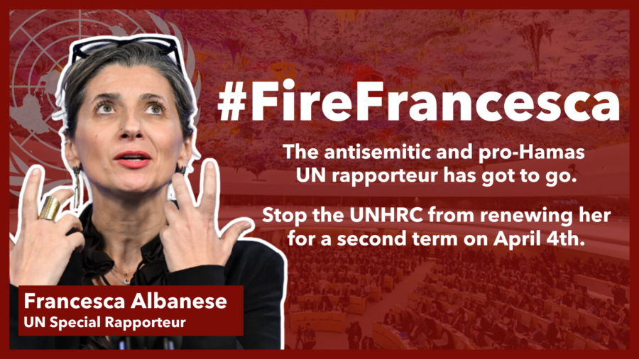 In occasione di una recente sessione dell’UNHRC (Alto Commissariato per i Rifugiati) a Ginevra, il direttore di UN Watch, Hillel Neuer, ha chiesto l’immediata cessazione del mandato di Albanese.