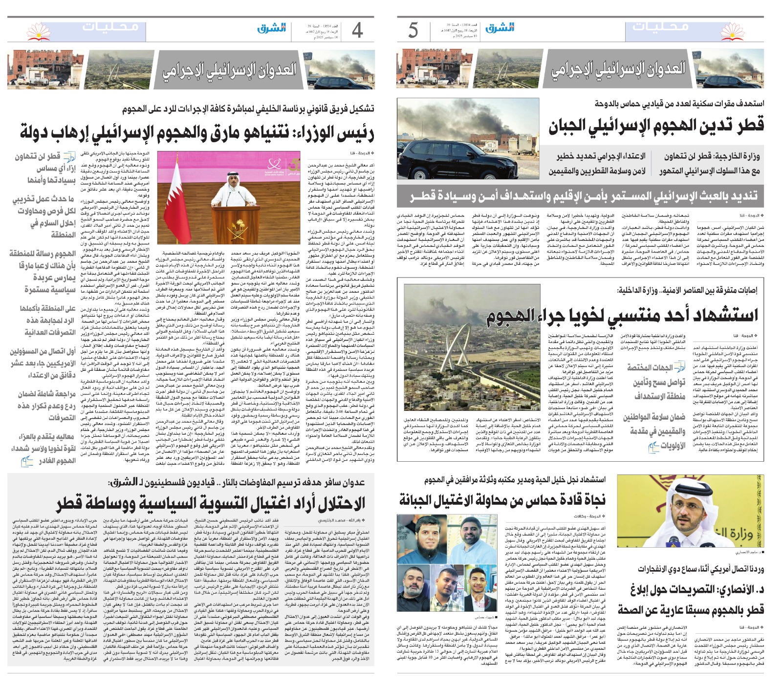 Quotidiano del Qatar “Al Sharq” del 10 settembre 2025