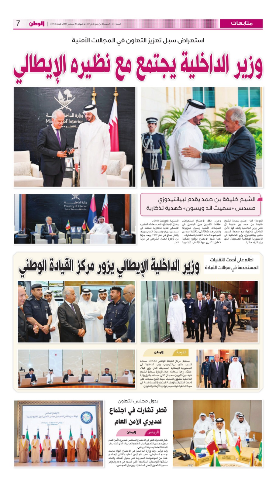 La delegazione del Ministero dell’Interno alla riunione era guidata dal maggior generale Mohammed Jassim Al Sulaiti, direttore generale della Pubblica Sicurezza.