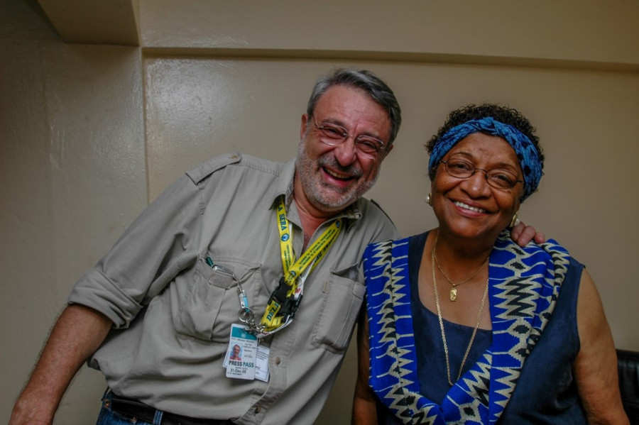 Massimo Alberizzi e il premio Nobel per la pace Ellen Johnson Sirleaf nel momento in cui ha appreso di essere stata eletta per la prima volta presidente della Liberia. (foto Nakano Tomoaki)