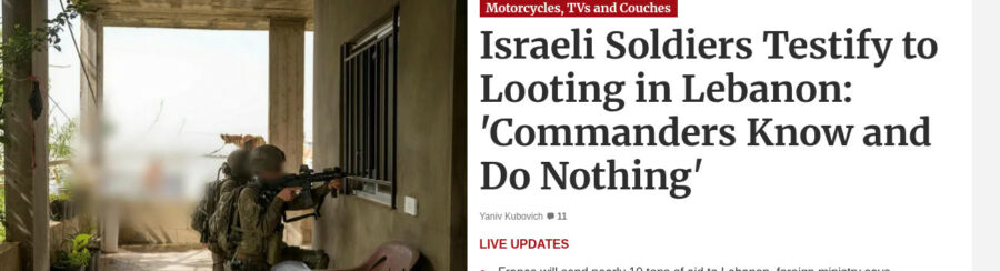 I saccheggi dei soldati israeliani in Libano vengono sottolineati dal quotidiano israeliano Haaretz