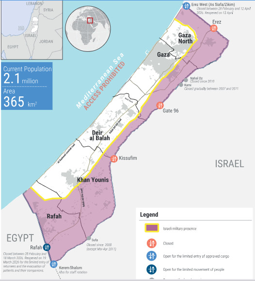 OCHA ha sottolineato che parte dei dati sono relativi a testimonianze raccolte sul terreno, dunque ancora ‘da verificare’ da parte delle Nazioni Unite. L’Ufficio dell’ONU ha precisato che le condizioni igieniche a Gaza sono sempre più preoccupanti: ci sono stati casi di peste. Imperversano topi e le fonti d’acqua sotterranee sono inquinate dai detriti e dai cadaveri rimasti sotto le macerie. La gente è anche costretta a vivere in pochi chilometri quadrati, come si evince dalla mappa.