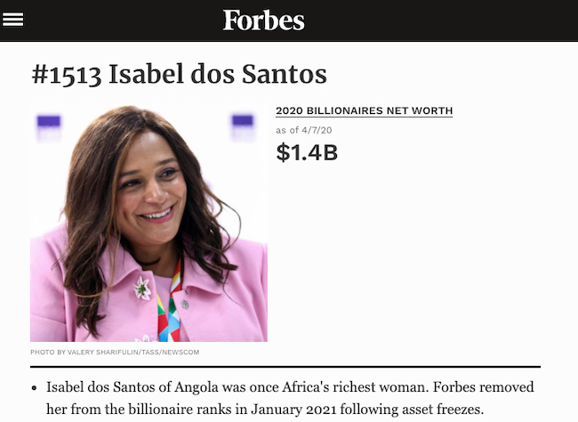 Emirati congelano i conti bancari della angolana Isabel figlia di Dos Santos