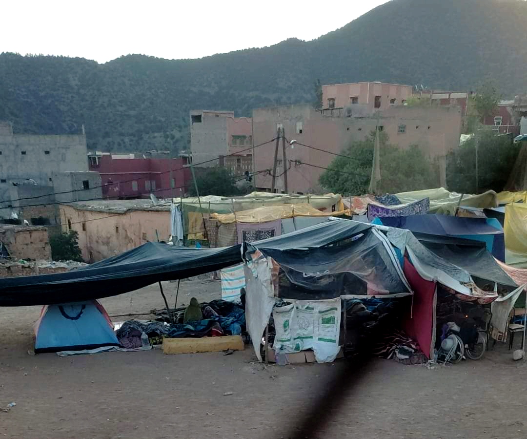 Tende di fortuna nel villaggio di Moulay Brahim, provincia di Al Haouz, regione di Marrakech-Safi